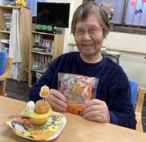 おやつにはカボチャのプリンをいただき、ハロウィン気分を満喫!