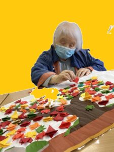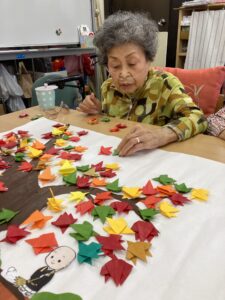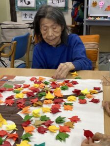 本日のクラフトは先週に引き続きもみじ作り。